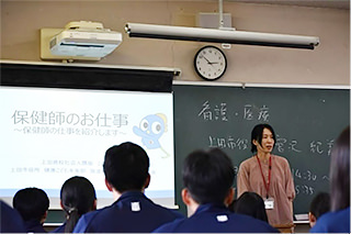 本講座は、1年生がキャリア学習(職業理解)の観点から、社会で活躍する上田高校の先輩方の講演を聞くことを通して、