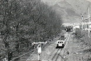 北塩尻駅より岩鼻地籍を通過する蒸気機関車(昭和25年頃)